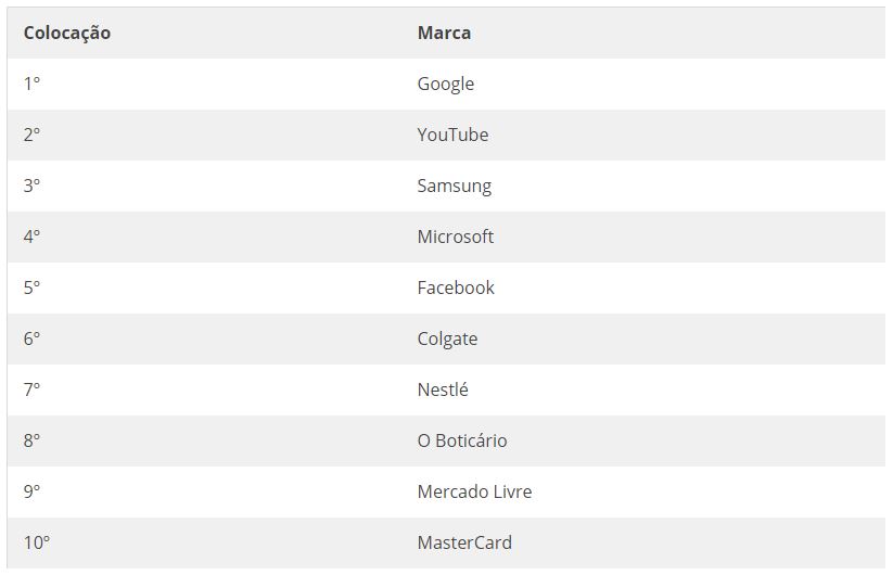 O Google conquistou novamente a primeira colocação do ranking, enquanto a Samsung caiu para terceira posição após conquistar a vice-liderança na pesquisa realizada em 2019, entregando a colocação para o YouTube. Se analisarmos, a plataforma de vídeos — que pertence ao Google — foi e ainda é primordial para inúmeros brasileiros em tempos de isolamento social para a realização de aulas, palestras, apresentações, etc.